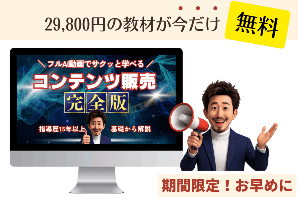 29,800円で販売していた【フルAI動画で学ぶコンテンツビジネス講座(2025最新版)】を無料プレゼントします