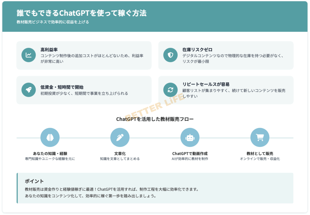 教材販売は、あなたの知識や経験をコンテンツにして、それを販売することで利益を得るビジネスです。