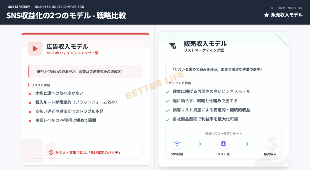 このモデルに注力することこそが、SNS発信で稼ぐ上での基本線になるということを覚えておきましょう。
