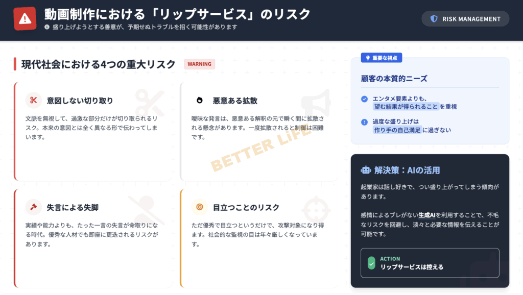 動画の内容が淡泊になりそうなとき、つい盛り上げようと、リップサービスをする人がいます。
