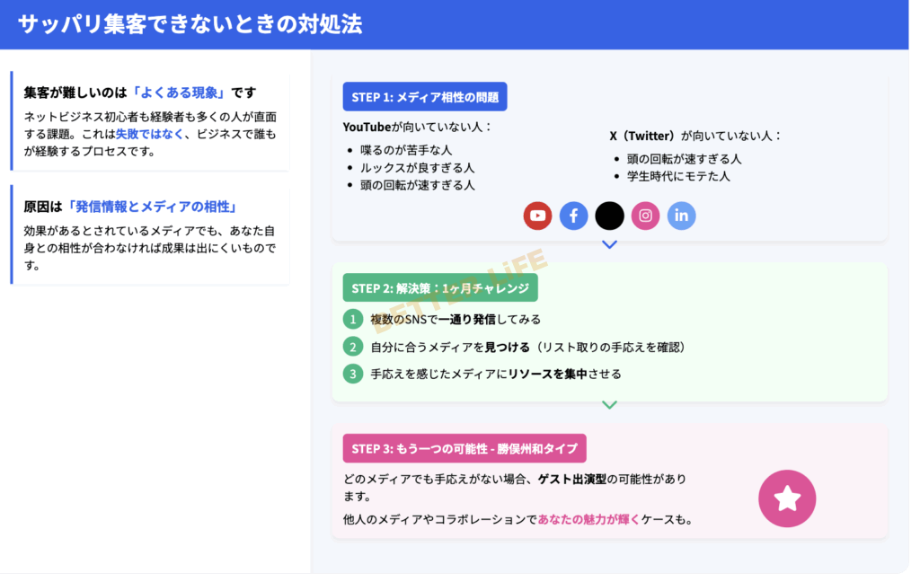 集客に困る、そもそもの原因は、あなたの発信情報と、発信しているメディアの相性による部分が多いです。