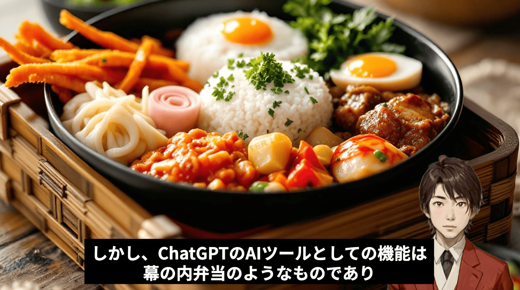 しかし、ChatGPTのAIツールとしての機能は、幕の内弁当のようなものであり、何でもできる一方で、全てが中途半端で物足りないというのが実態です。