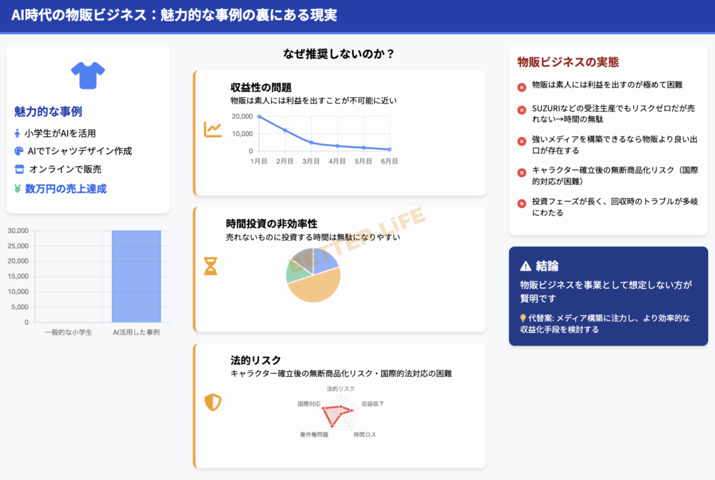 AIによるデザインがダメというわけではなく、そもそも物販は、素人には利益を出すことが不可能に近いからです。