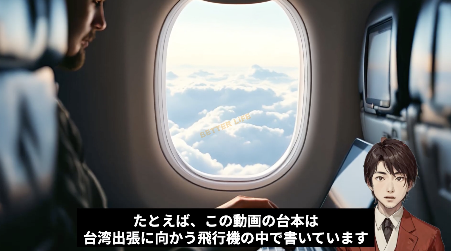 たとえば、この動画の台本は、台湾出張に向かう飛行機の中で書いています。