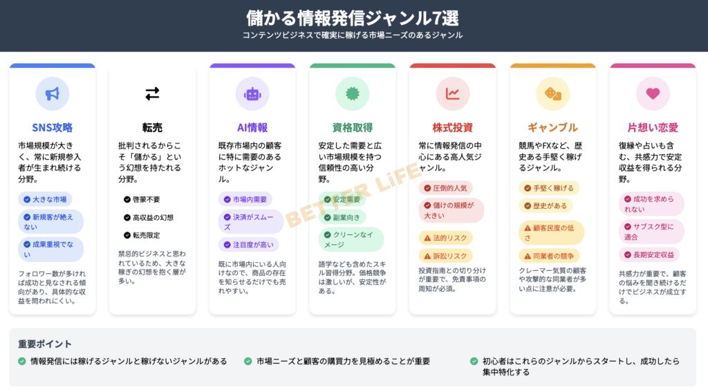 以上が、儲かる情報発信ジャンル7選です。