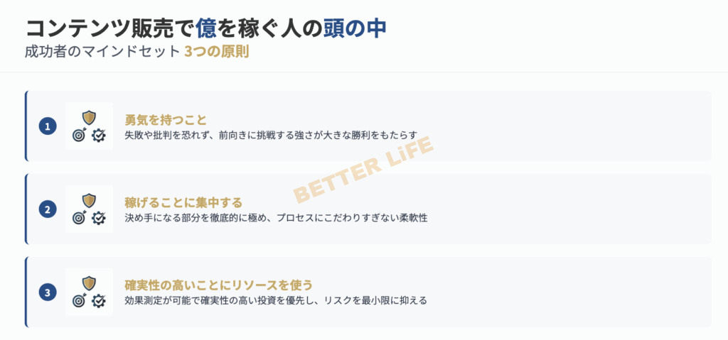 あらためて、コンテンツ販売で億を稼ぐためのマインドセットを整理します。