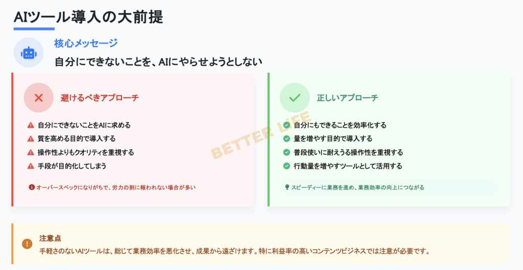手軽さのないAIツールは、総じて業務効率を悪化させ、あなたを稼ぎから遠ざけます。