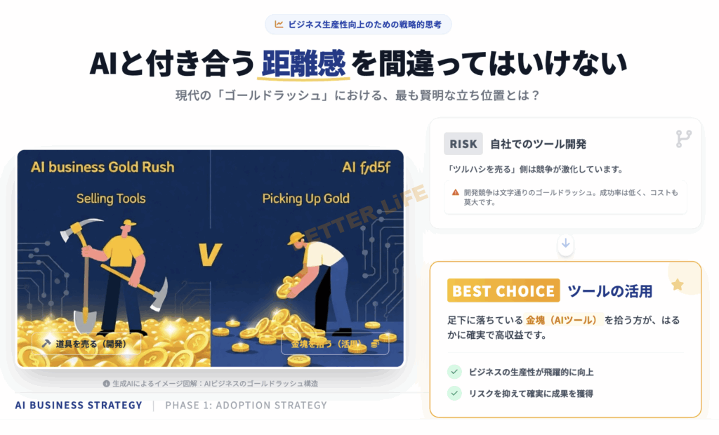金を掘る道具を売るよりも、足下に落ちている金塊を拾う方がはるかに儲かりますし、確実です。