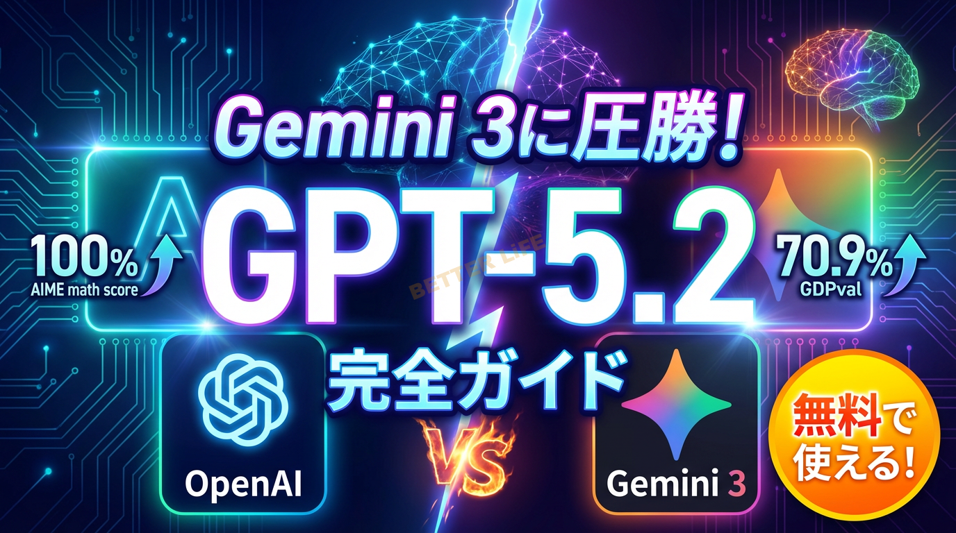 2025年12月12日、AI業界に激震が走りました。OpenAIが満を持して発表した最新AIモデル「GPT-5.2」が、Googleの「Gemini 3 Pro」を圧倒するベンチマーク結果を記録したのです。この発表は、先日Gemini 3がOpenAIの「GPT-5.1(Thinking)」を超えたことで業界トップの座を奪われかけていたOpenAIにとって、まさに反撃の狼煙となりました。