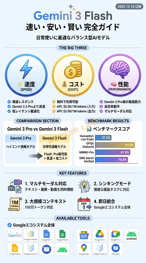 1. Gemini 3 Flashの特徴:速度・コスト・性能の完璧なバランス