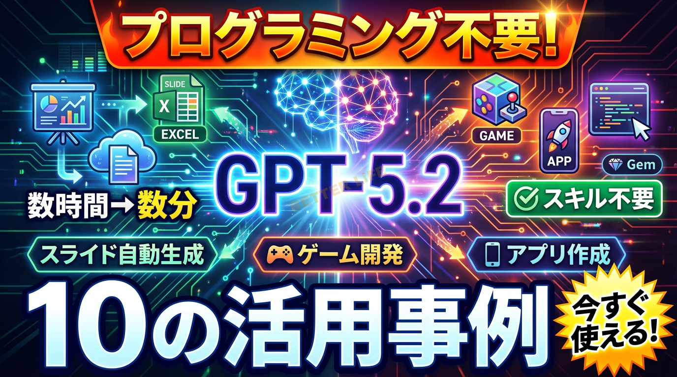 本記事では、GPT-5.2の概要から、今すぐ使える10の実践的な活用事例まで、具体的に解説します。ビジネスパーソン、クリエイター、開発者、そしてAI初心者まで、すべての方に役立つ情報が満載です。