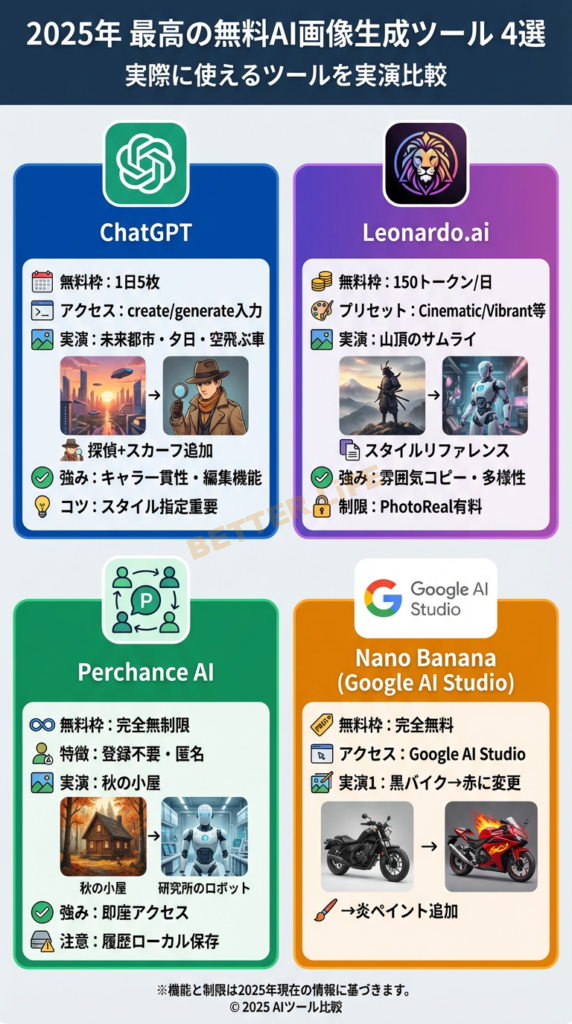 2025年12月最新版:無料で使えるのにプロ級のクオリティ!おすすめ画像生成AIツール四天王👑