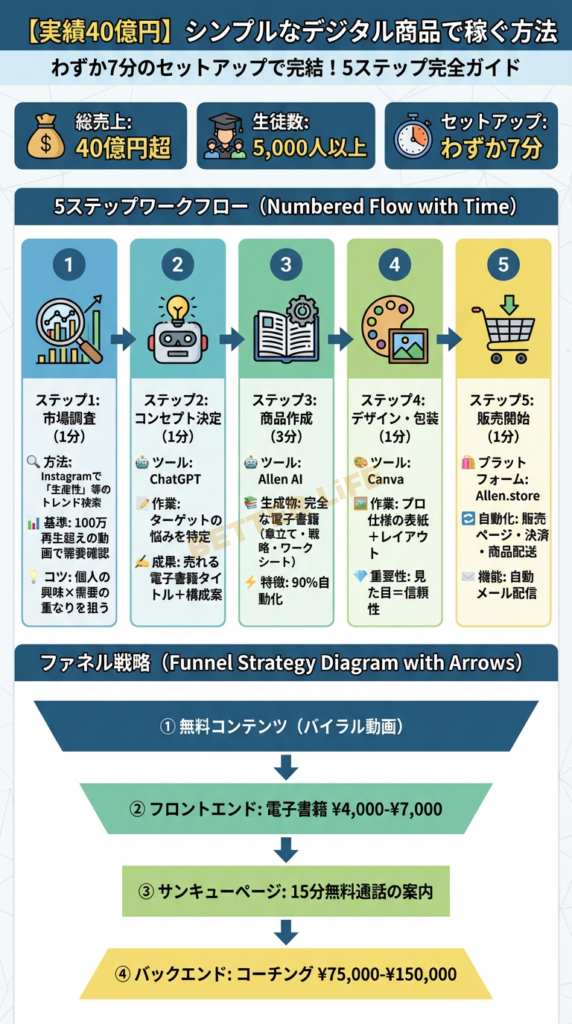 今回は、この驚異的な成功を収めた起業家が実践した、7分間で完了するコンテンツ商品のセットアップワークフローと、それを何千倍もの売上に変える販売戦略の全貌を、ステップバイステップで解説します。