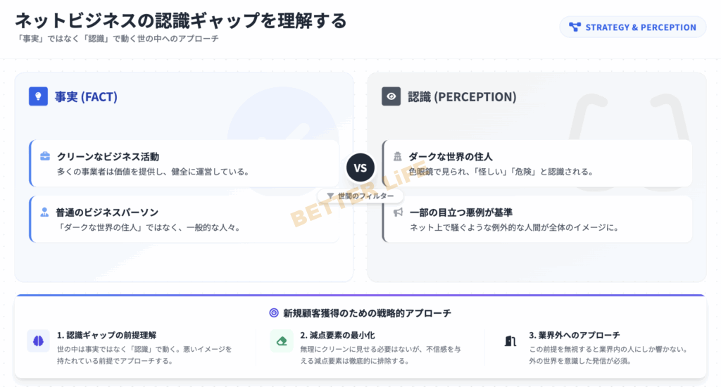 したがって、ネットビジネスで稼いでいる人はダークな世界の住民、といった具合に、色眼鏡で見てくる人は少なからず存在します。